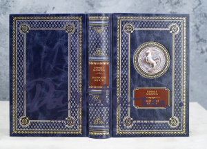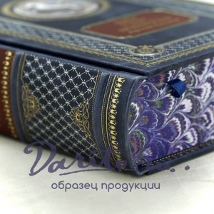 Кожаный составной переплет ручной работы ( кожа Madras с эффектом PullUp); Авторский дизайн книги, изображающий мифического животного Пегас на обложке в виде художественной вставки с объемным эффектом, тиснение золотой и серебряной фольгой (производства KURZ, Германия), марки на корешке и передней крышке из фольги бордового цвета с матовым эффектом (производство Турция); трехсторонний обрез книжного блока, оформленный узором «Павлинье перо»; ляссе-закладка в цвет переплета, двухцветный каптал, внутренняя дублюра с золотым орнаментом, форзац из высококачественной дизайнерской бумаги.